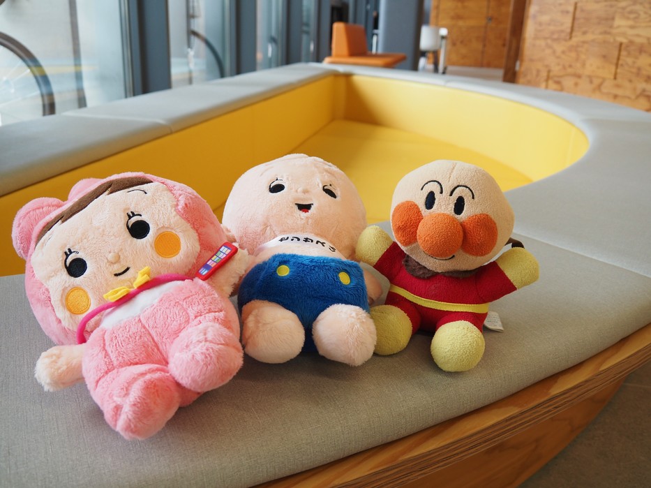 子育て支援課の前にはキッズスペースがあり、小さいお子様が靴を脱いで遊ぶことができます。アンパンマンのぬいぐるみのほか、統計調査のキャラクターであるセンサスくんとみらいちゃんのぬいぐるみも置いてありますので、一緒に遊ぶこともできます。小さいお子様連れでも安心して役場にお越しください。