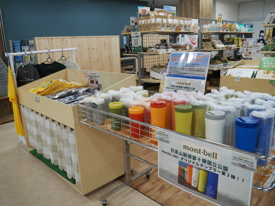 店頭には、モンベル製オリジナルタンブラーが並んでいました。