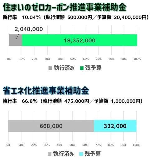 なお、エアコン、エコキュート、太陽光発電設備等の補助事業である住まいのゼロカーボン化推進事業については、まだ予算が残っておりますので申請可能です。