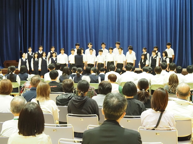 芽室中学校の校歌を作詞した堤美智子さんも会場にお越しになっており、堤さんを前に3年生全員で校歌も歌いました。