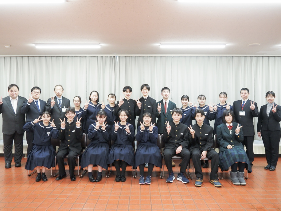 今回は3月19日(火)に行われる北海道中学生バレーボール優秀選手選抜大会、3月24日(日)に行われる帯広地区吹奏楽連盟学校選抜(中学校・高等学校)(第3回北海道吹奏楽選抜演奏会)、 3月26日(火)から行われる第26回日本ジュニア管打楽器コンクールに向けたもので、皆さんからは「この機会を無駄にしないよう、全道優勝を目指し頑張りたい」「本番は一発勝負なので、良い演奏をしたい」「周囲への感謝を忘れず大会に臨みたい」と堂々とした挨拶がありました。