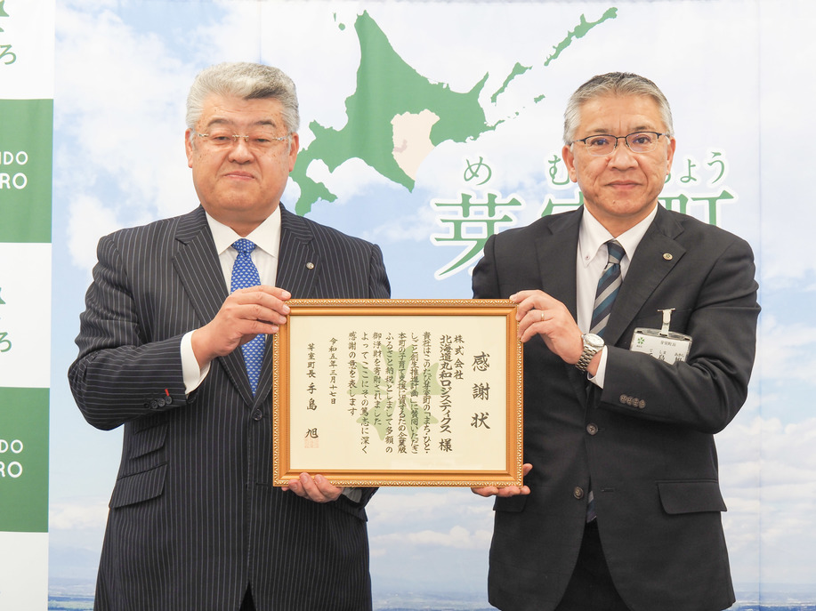 このたび、北海道丸和ロジスティクス様より、企業版ふるさと納税をいただきました。同社は当町へ企業版ふるさと納税をいただいた第1号の企業であり、今回で3年連続となります。