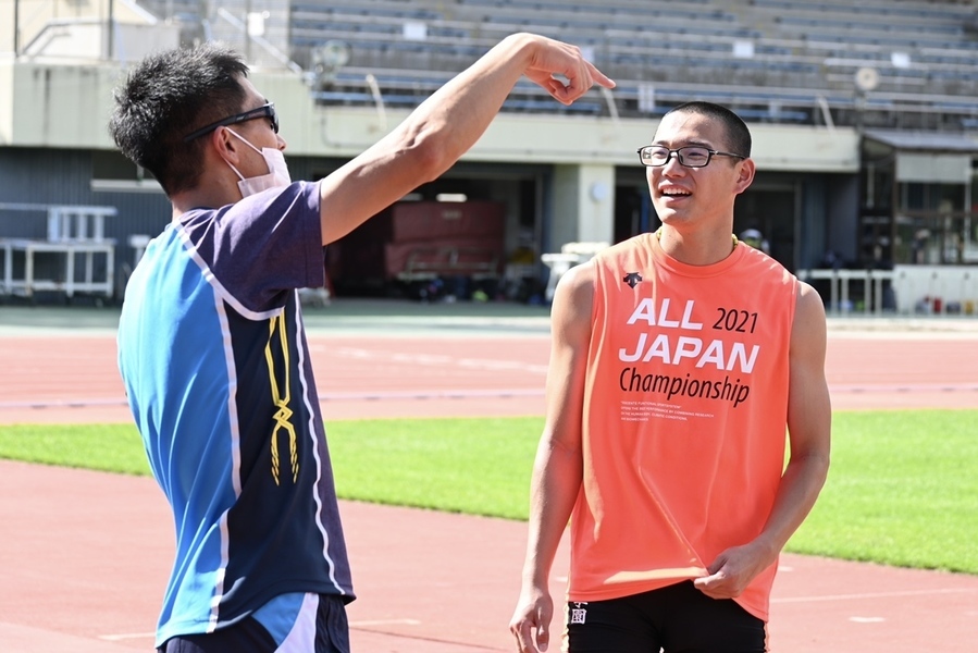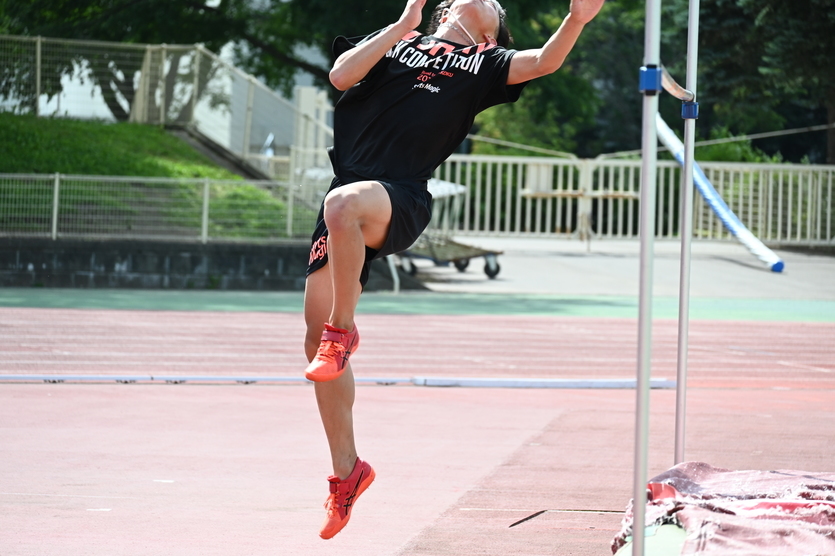 この日の練習では1m85cmの高さを拳1つ分ほどの余裕をもって2回クリアーし「調子は上がって来ていると思います」と手応えを口にしました。自己ベストは昨シーズンマークした1m89cm。インターハイは公式練習が1m91cm(!)、1回目の高さが1m94cmスタートと、1本目から自己ベストの跳躍が求められます。本番の目標について「自己ベストは出せると思うので、記録を残したい」とコメントをいただきました。