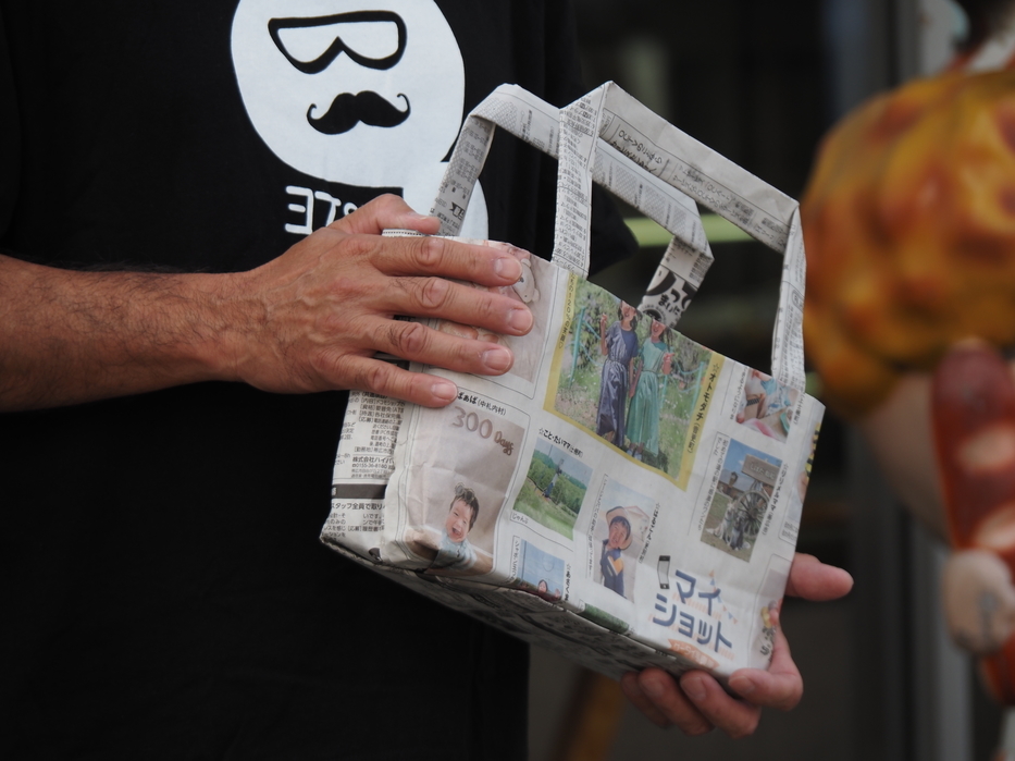 コロナ禍により、地域の方とのコミュニケーションや交流が取れなくなったなかで「地域との繋がりを大切にしたい」との想いから企画がスタート。7つのグループホームの職員・利用者が協力し合い、新聞紙でのエコバッグ製作にあたったそうです。