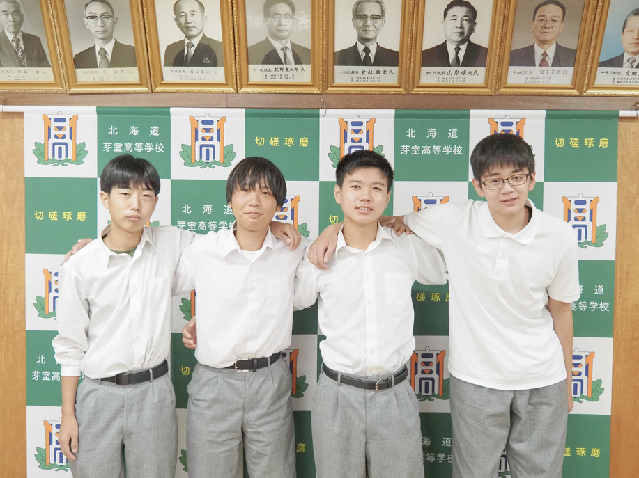 ▲全国大会では高橋大翔さん(写真左:芽室中→更別農業高校)を加えた5人で出場