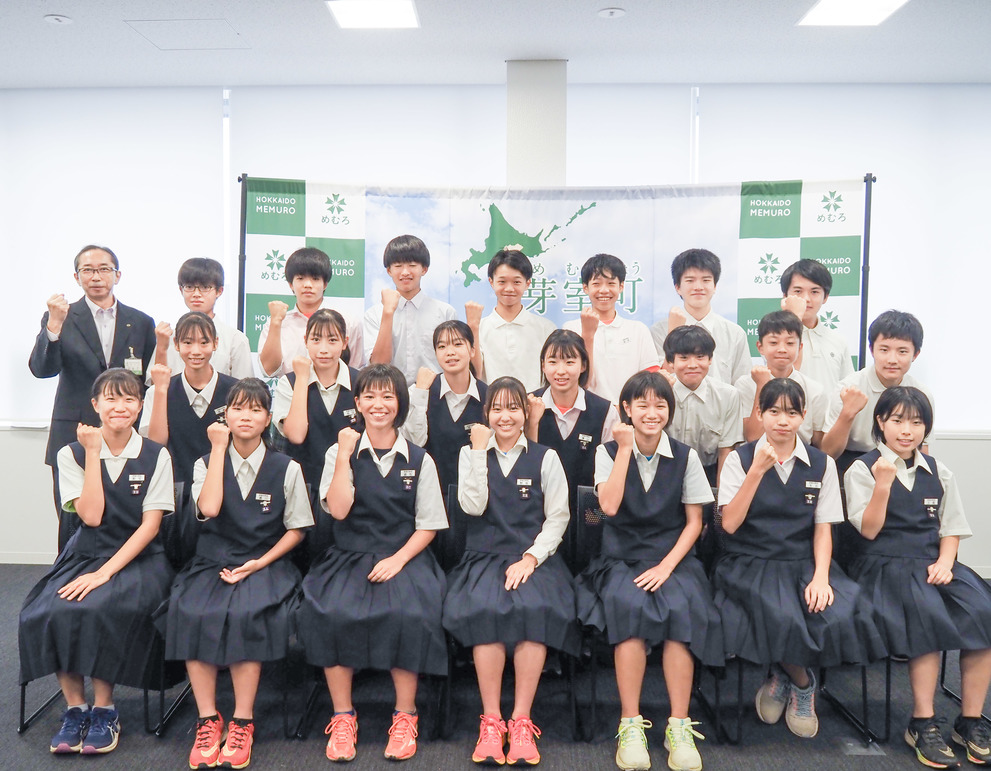 9月6日(水)、役場庁舎にて第30回北海道中学校新人陸上競技大会(9月16,17日:札幌市厚別公園競技場)の出場挨拶が行われました。