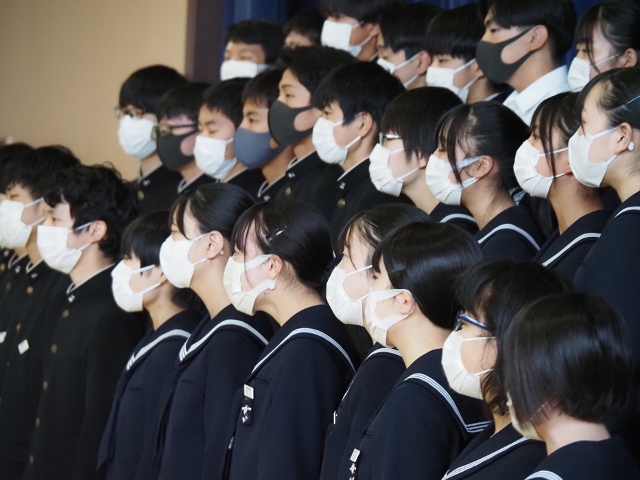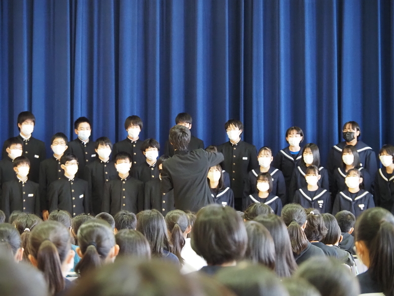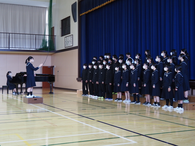 曲目は先日おこなわれた文化祭で発表されたもので、一部は今日に向けてアレンジが加えられるなど、各クラス一丸となって綺麗な歌声を披露。6年生の子どもたちも、中学生のお兄さん、お姉さん方の立派な姿を真剣なまなざしで見つめていました。
