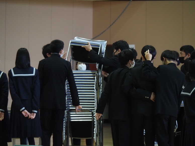 6年生の退場後は、率先してイスを片付ける姿も印象的でした。本行事は『中1ギャップ』解消に向けた取り組みのひとつとのこと。6年生の子どもたちも、来春の進学が楽しみになったのではないでしょうか。