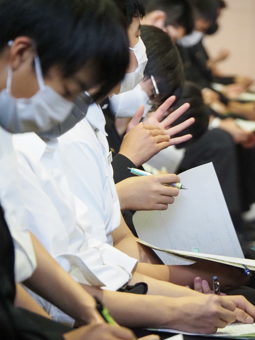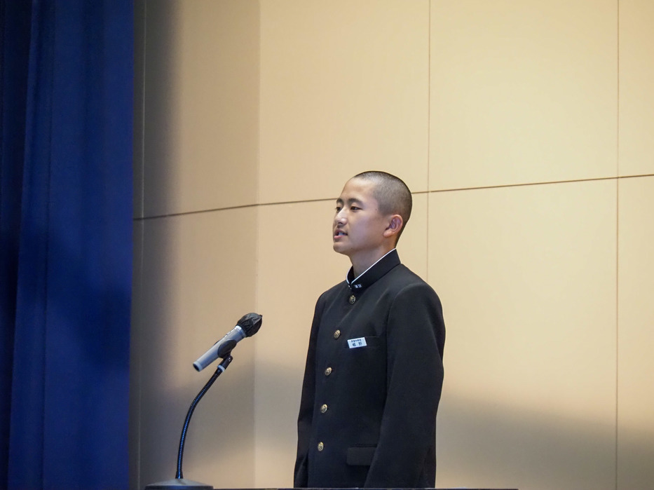 最優秀賞に選出された嶋野 誠一郎さん(芽中)は、映画製作の中で作曲に携わった際のトラブル体験を例に、相手を慮る大切さの気づきを語りました。