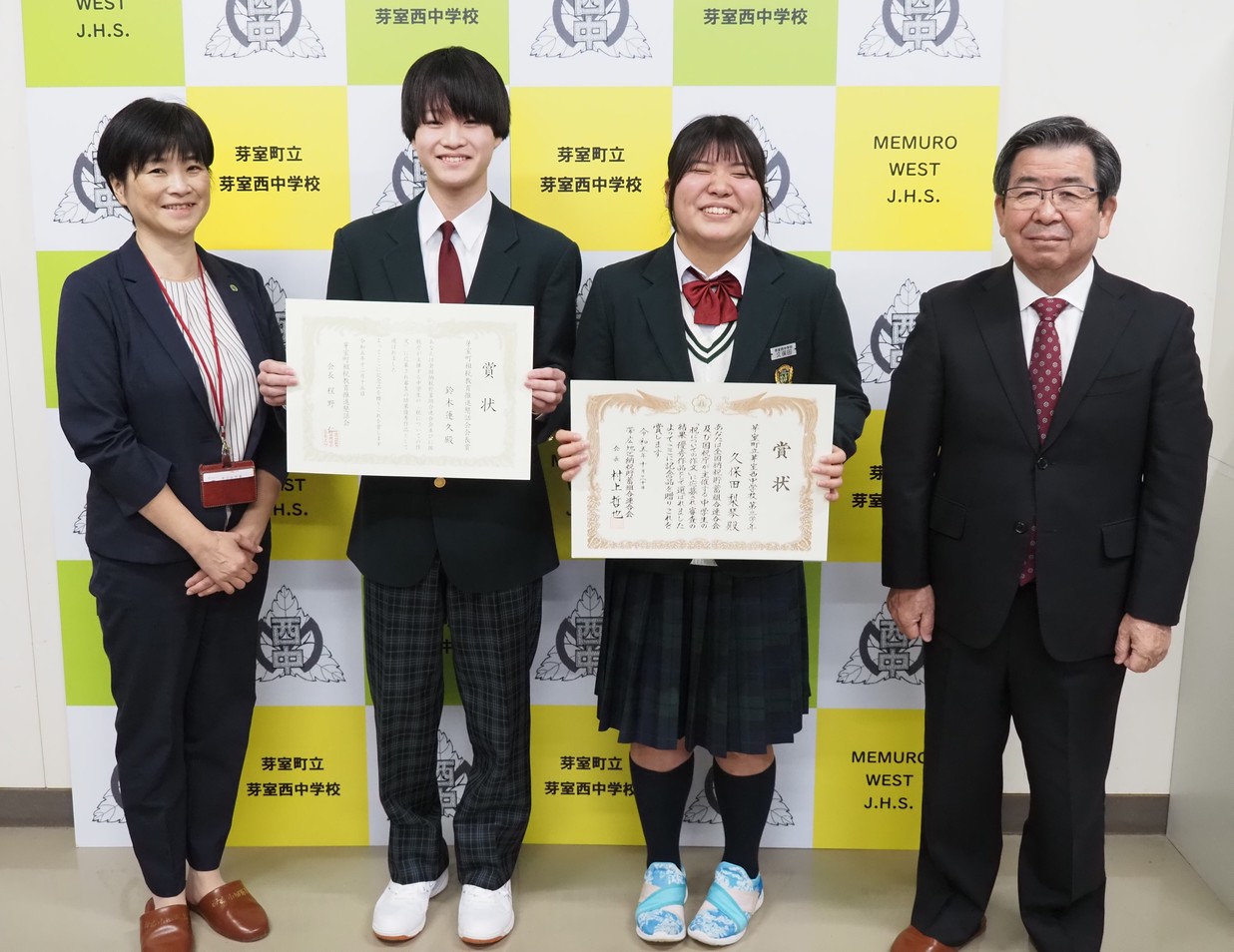 12月15日(金)、芽室西中学校で授賞式が行なわれ、それぞれ表彰状と記念品が贈られました。