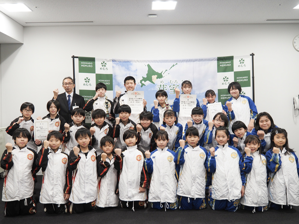今回はミニバスケット少年団『芽室ホルックス』の皆さんが来庁。先月の十勝地区予選では男子が4位、女子が3位の成績で全道大会の出場を決めています。