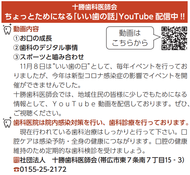• 十勝歯科医師会 ちょっとためになる「いい歯の話」YouTube配信中?