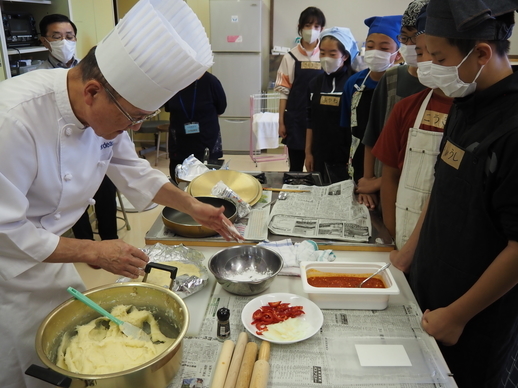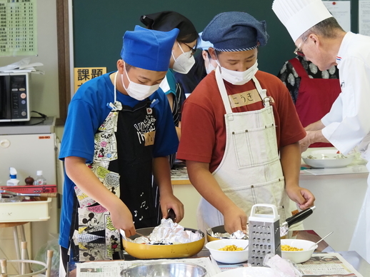 これは、食農での収穫体験を経て地域の生産者の想いを感じ取ること、地元食材の多様な可能性を学ぶとともに、食や食文化、生産に関わる人たちへの感謝の心を育むことなどを目的に、食材を料理の主役と考え地産地消を実践・継続している帯広市内のフレンチレストラン「ル・ボルドー」のオーナーシェフで、芽室町出身の加藤和彦シェフを招いて行われたものです。