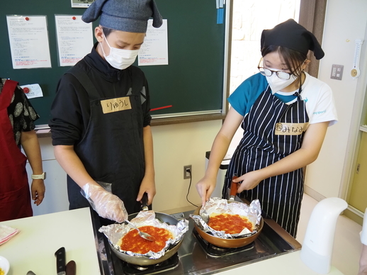 生徒たちは生地をピザの形に整えたり、トマトソースや具を綺麗に載せたり、一生懸命調理していました。