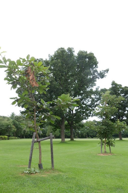 その様子が、もともと大きく育っているカシワが、新しく植えられたカシワを見守るように感じられました。