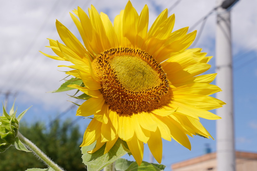 今日は役場庁舎付近での写真です。元気で明るいイメージの夏の代表花、ひまわりが綺麗に咲いていました。「向日葵」は、花に向日性があることからつけられた「向日」に、「太陽に向かって成長する植物」という意味のある「葵」がつき、「向日葵」とかいて「ひまわり」と呼ばれるようになったそうです。