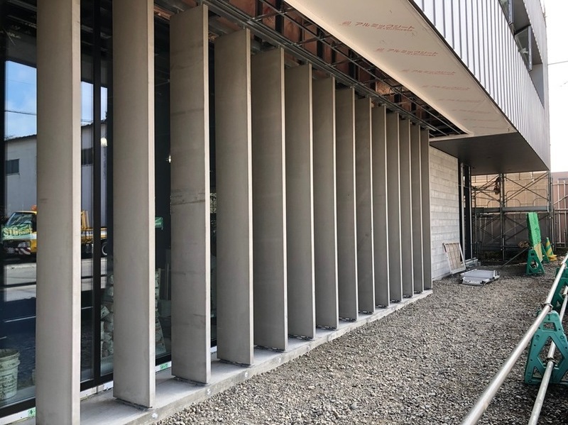 写真は庁舎の西側の1階付近です。窓の前面にこのようなパネルが配置されています。