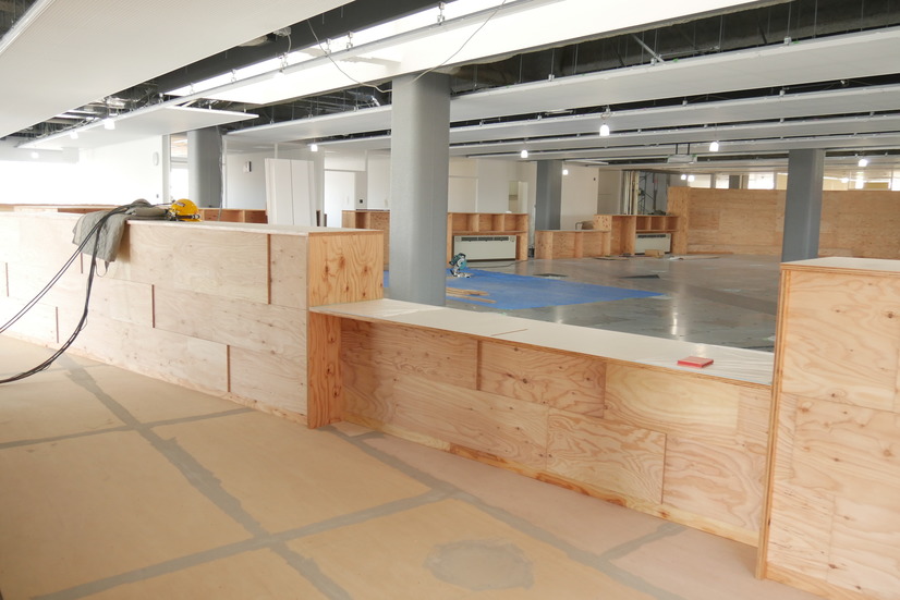 今日は新庁舎建設現場からの写真です。2階の中心部分にカウンターが出来ていました。内装部分も形が出来てきて実際に使用するイメージがつきやすくなっています。そして、来月11月には一般の方向け、団体の方向けそれぞれの内覧会を予定しています。詳しくは10月号の広報誌すまいるをご覧ください。