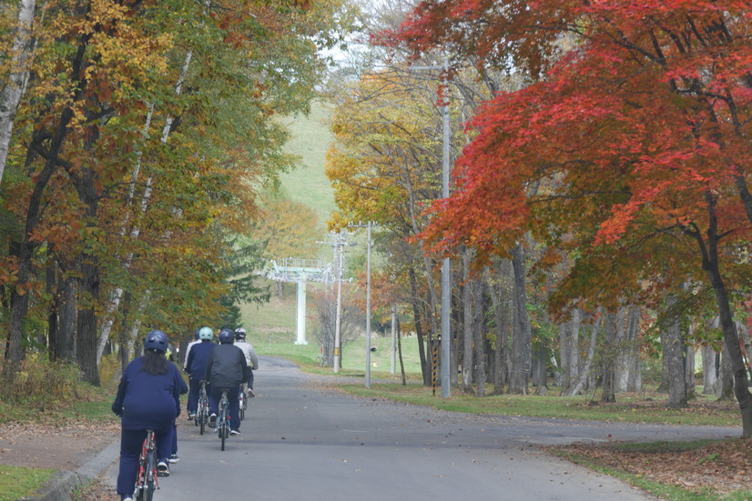 今日は白樺学園高校の皆さんの職場体験の様子です。サイクルツーリズムの体験では地域おこし協力隊の及川さん指導のもと、電動アシスト自転車で新嵐山の展望台まで登りました。