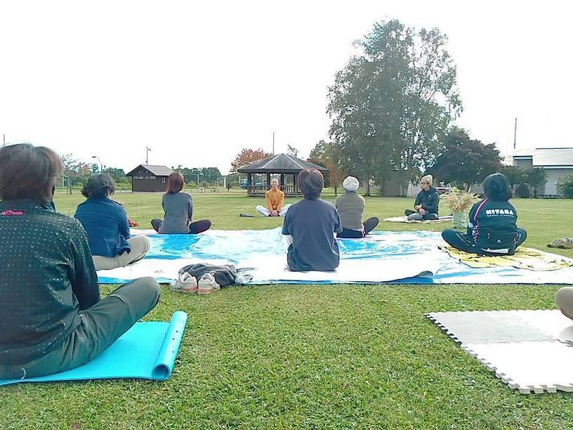 今日は上美生公園からの写真です。生演奏の癒される音楽の中、あさヨガが行われていました。未経験者でも安心して行える内容であるため、参加者はとても楽しんでいました。その後、みんなのお店KAMIBI内にある交流スペースひだまりにて朝ごはんを食べ、参加者同士の交流もしていました。適度な運動をすることで、すっきりとした気持ちで一日を始められそうですね。