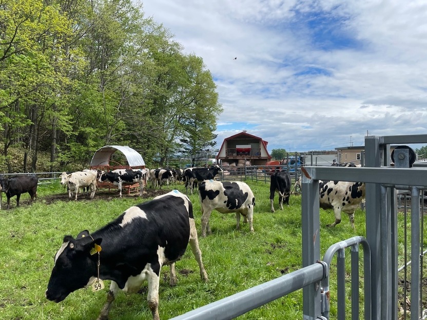 今日は北明西で撮影した一枚です。この地区には育成牛の預託管理を行う町営牧場(光勇牧場)があり、例年5~10月までの約半年間が放牧期間となっています。どこか牧歌的な雰囲気の中で、牛も伸び伸びと過ごせそうな場所ですね。