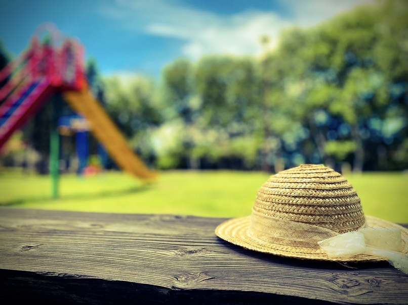 今日は芽室神社西側の公園で撮影した一枚です。どなたか親切な方が置いて下さったのでしょうか、ベンチで持ち主を待つ麦わら帽子がありました。