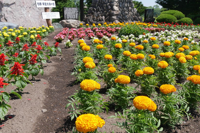 今日は毛根地区の開拓百年記念碑前の花壇で撮影した一枚です。地区の方々が整備されたのでしょうか、とても綺麗な花々が咲いていました。