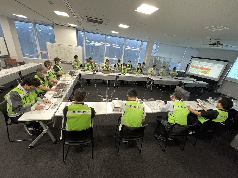 今回の訓練は、事前にシナリオは一切明かさない「ブラインド方式」での実施。次々と付与される状況変化の条件に合わせ、様々な想定のもと判断・決定しながら、各部の役割や動きを再確認する緊張感の高い訓練となりました。
