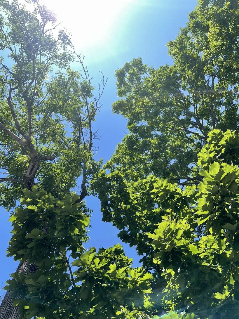 この見上げる青空と、この時期ならではの美しい木々の緑が好きな方、ぜひ、いいね!をお願いします。