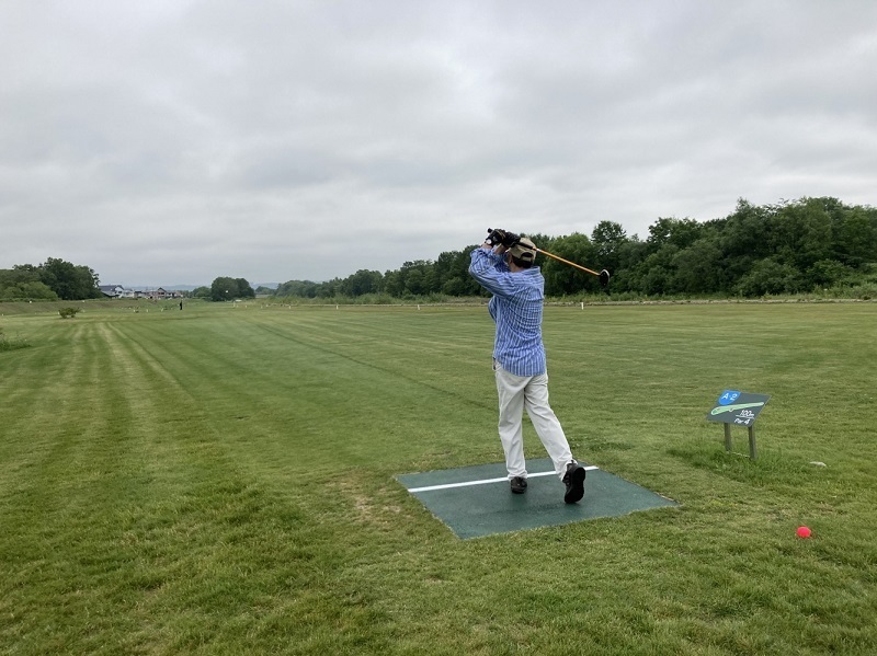Aコースで一番距離の長い100メートルの2番ホールを、カーン!と気持ちよい音でフルスイング。お見事なショットでした。