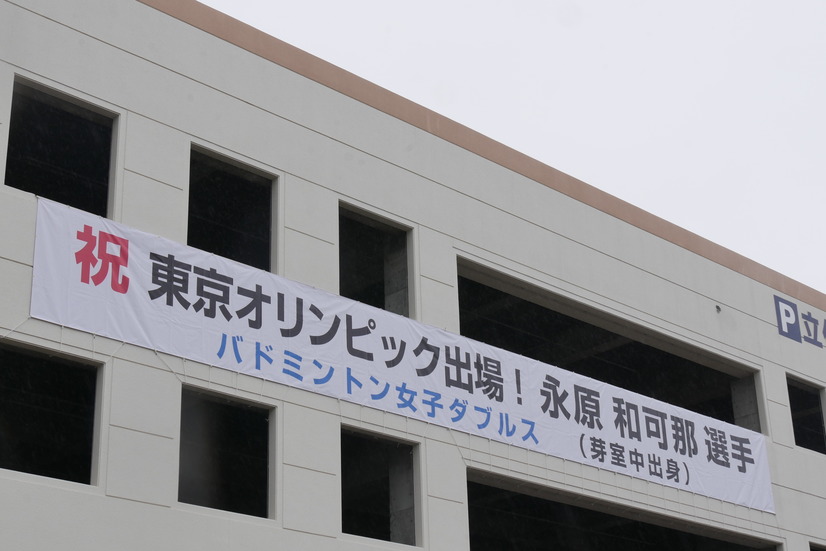 今日はめむろーど前で撮影した一枚です。既にほとんどの方はご存じかと思いますが、本町出身の永原和可那さんが、バドミントン女子ダブルスの五輪代表に選出されました。現在、役場内でも町を挙げての応援準備を行っているところです。