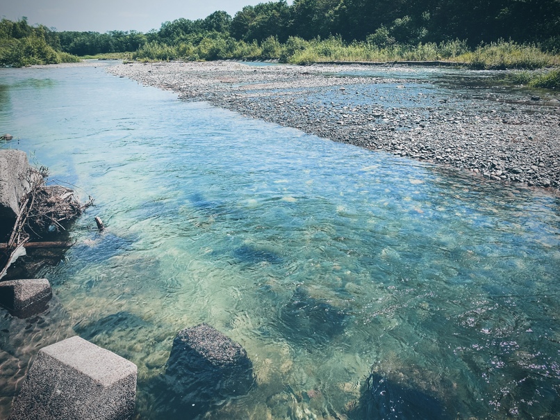 今日は新生橋の下で撮影した一枚です。昨日の通り雨による増水や濁りはほとんどなく、美生川の穏やかな清流を見ることができます。