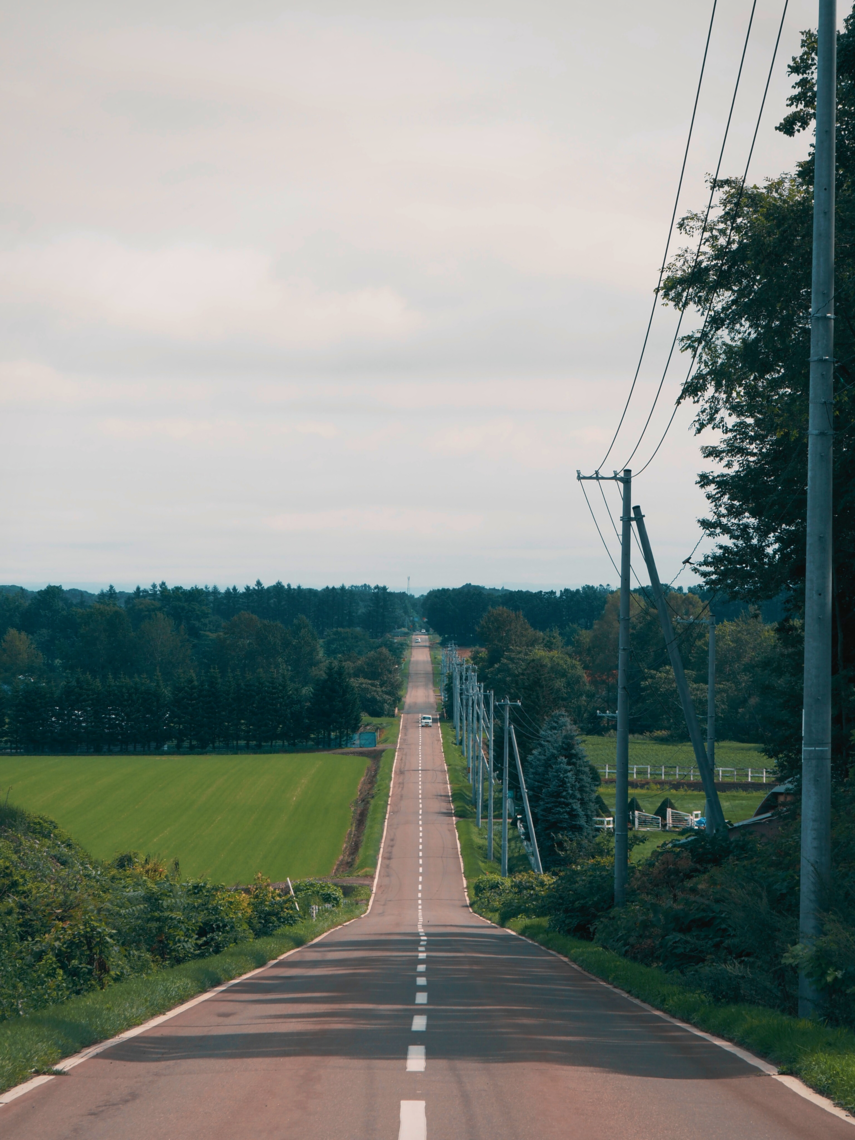 今日は美生4線付近で撮影した一枚です。町の市街地は平坦な土地が多いですが、農村部にはこのような坂もあり、真っすぐな道を遠くまで見渡せるようになっています。