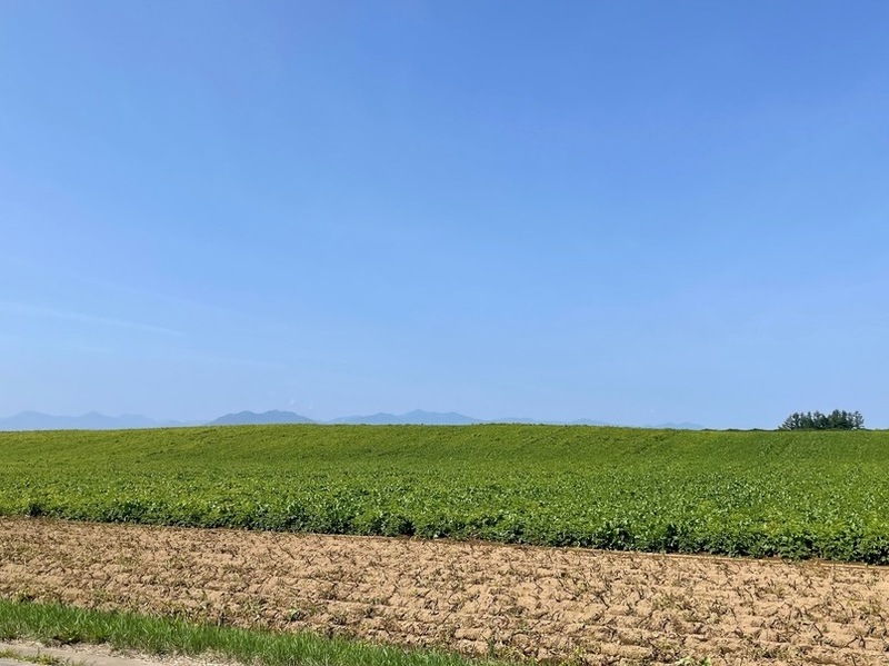 この場所は、毎年輪作体系の中で異なる作物が植えられているのですが、いつもまっすぐな畝が作られていて、その背景には日高山脈が見えて、農家さんの営みと自然の美しさが合わさり、思わず息をのむ景色の一つです。