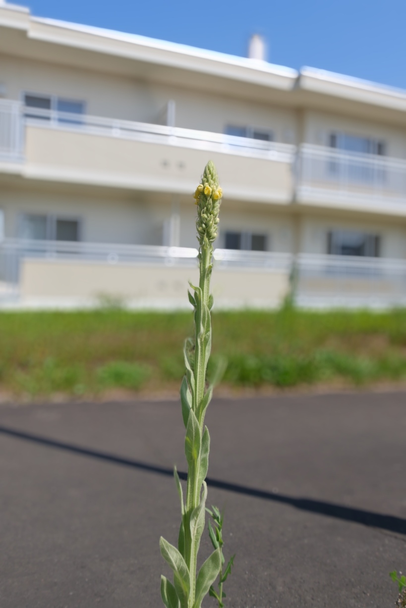 今日は市街地の東6条付近で撮影した一枚です。今年になって町内でよく見かける背の高いこの雑草ですが、どうやら『ビロードモウズイカ』という2年草のようです。「夏美人」の花言葉をもち、少雨に強く日当たりの良い気候を好む特徴があるようです。生育サイクルと今年の気候が噛み合ってしまい、2m以上の高さに成長したものも見かけます。