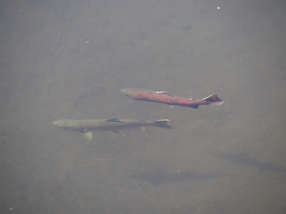 今日は西小学校近くのピウカ川で撮影した一枚です。ピウカ川では小さな魚や虫しか見たことがなかったため、大きな魚影を見て思わず撮影してしまいました。体色が赤みを帯びていますので、婚姻色のサクラマスと思われます(ヤマメかもしれませんが…)。サクラマスは生まれ育った川から海に出て、およそ1年を海で過ごした後に生まれた川まで遡上し産卵します。