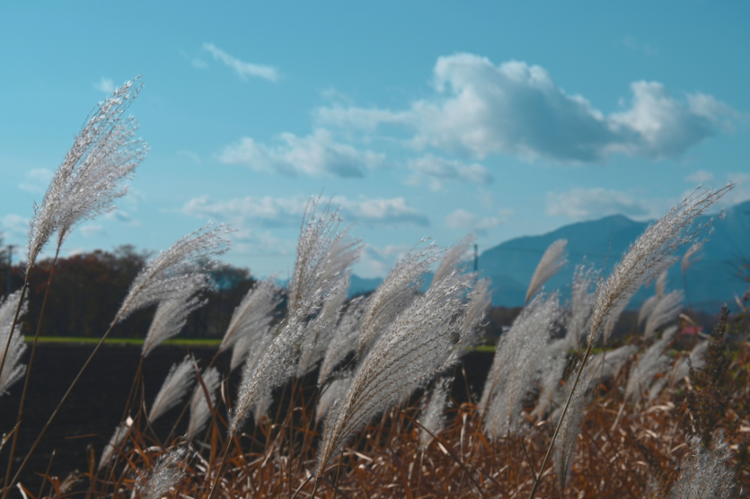 今日は中美生で撮影した一枚です。冠雪した山、夏の時期よりも高くなった空。まさに晩秋を感じる風景が町内各所で見られるようになりました。