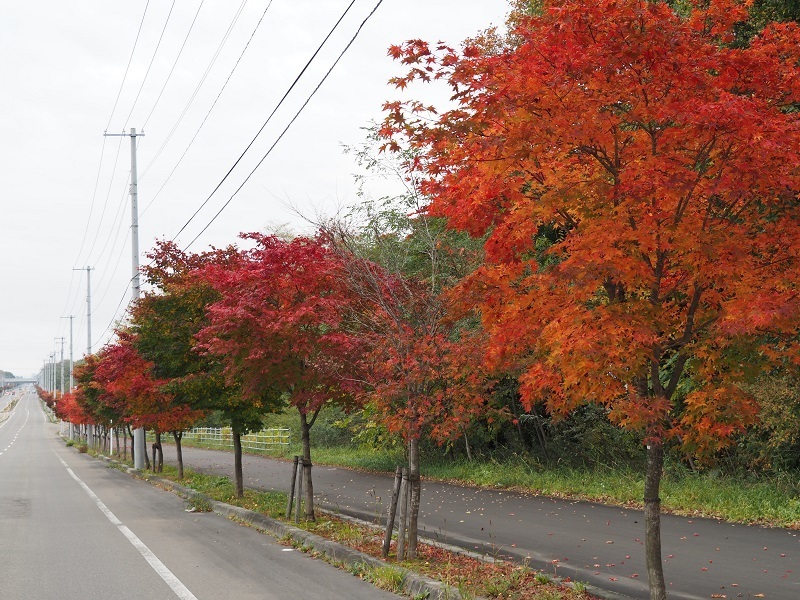 西帯広までの数百メートルにわたって、街路樹が綺麗に色付いています。赤黄緑茶の色のコントラストに思わず目を奪われてしまします。