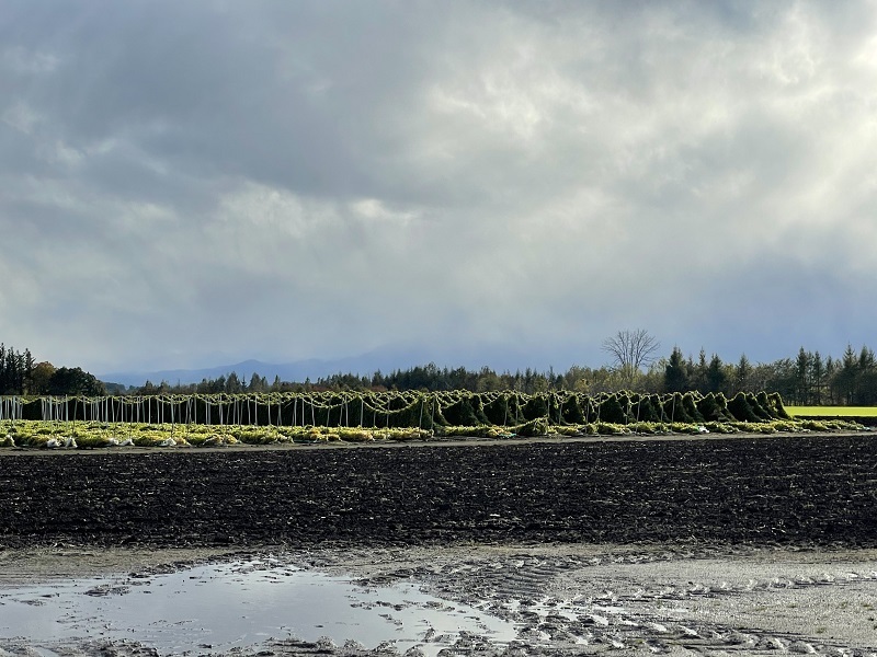 収穫に向けて、ネットやポールを取り外す作業が始まっています。