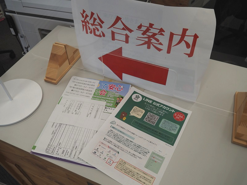 住民窓口の総合案内では、転入されたみなさまに様々な住民サービスを知っていただくため、文書をお渡ししています。