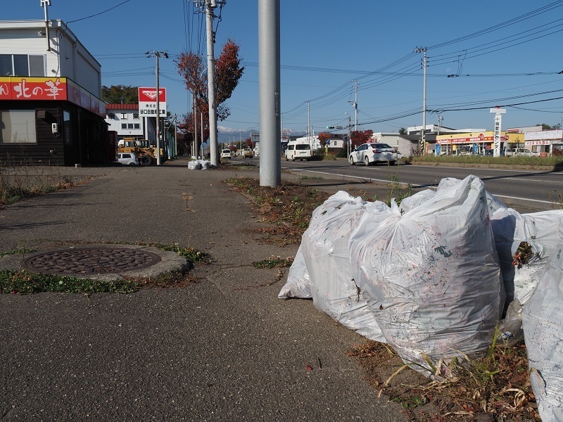 写真は週末に片づけられたものでしょうか。きれいに袋に集めていただいています。