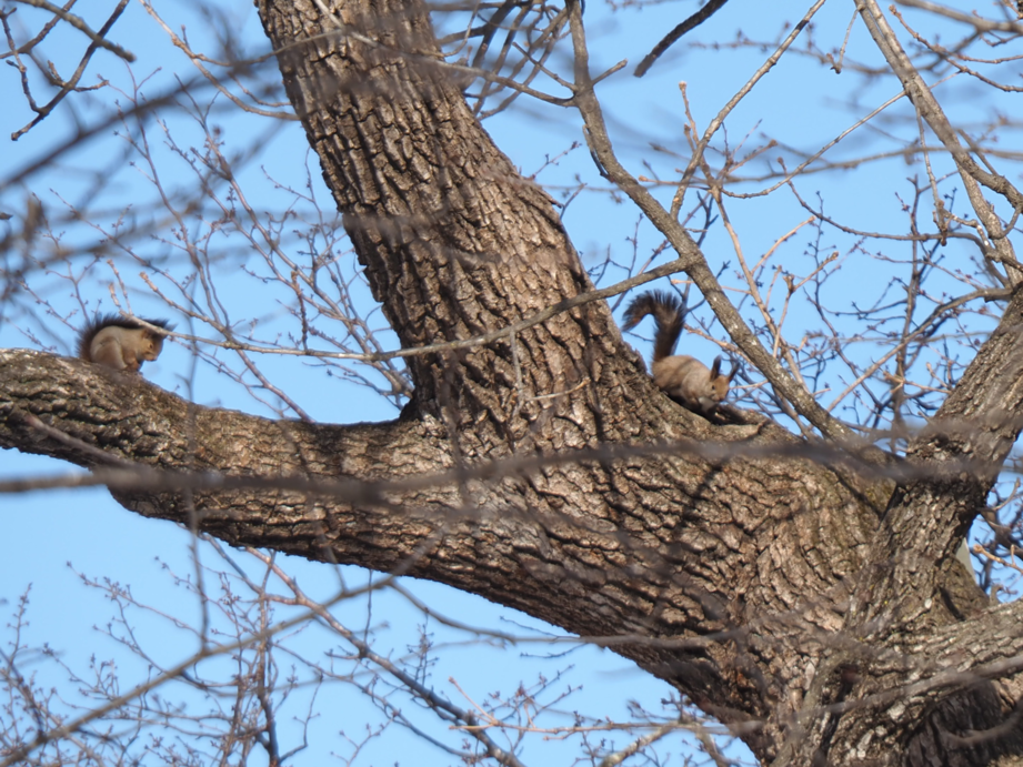 今日は芽室公園で撮影した一枚です。遠くの樹から物音がしたので見上げてみると、2匹のエゾリスが木の実などを集めて食べていました。