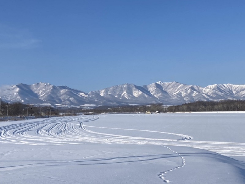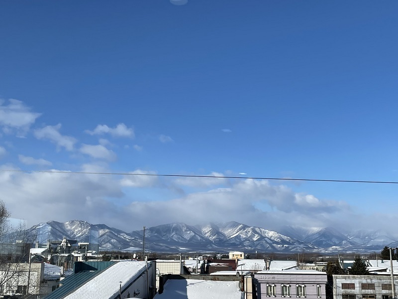 今朝は雲ひとつない青空。山の稜線もくっきりと見えて、日高山脈が一段と映える日となりました。