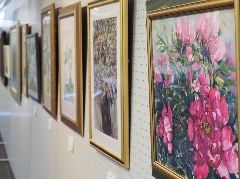 今日は中央公民館1階ロビーで撮影した写真です。現在こちらでは、水ばしょう絵の会によるグループ展が行われています。