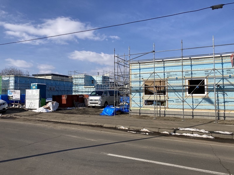 雪解けが一気に進み、町内のあちこちで着工中の住宅を見かけるようになりました。町内の大きな団地分譲はすでに整備済みですが、市街地のなかでも空き地がけっこうあり、新築住宅やマンションの建設をここ最近多く見かけます。