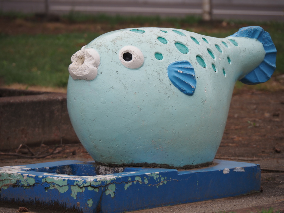 今日はひばり児童公園で撮影した写真です。大型の遊具はありませんが、フグのモニュメント(?)や複数人で遊べるシーソーのような遊具、二股になっている滑り台など変わり種が楽しめる公園となっています。