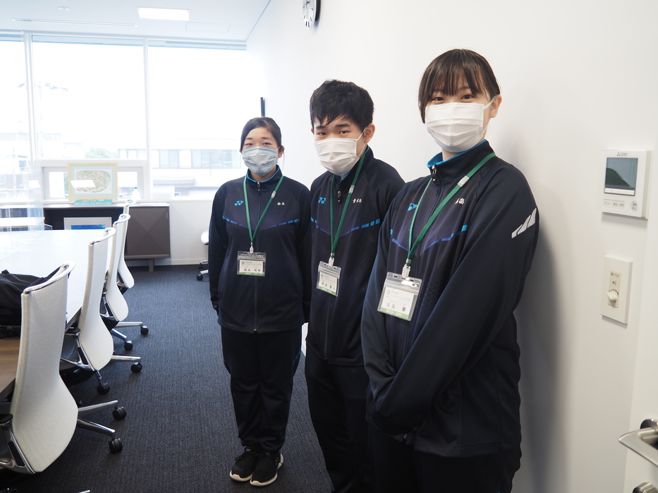 今日は役場庁舎内で撮影された写真です。明日までの2日間、清水高校2年生の3人がインターンシップ研修に来ています。今日は町営牧場やコミュニティスクールについて学習し、町内会に関するポスターを作成する予定だそうです。