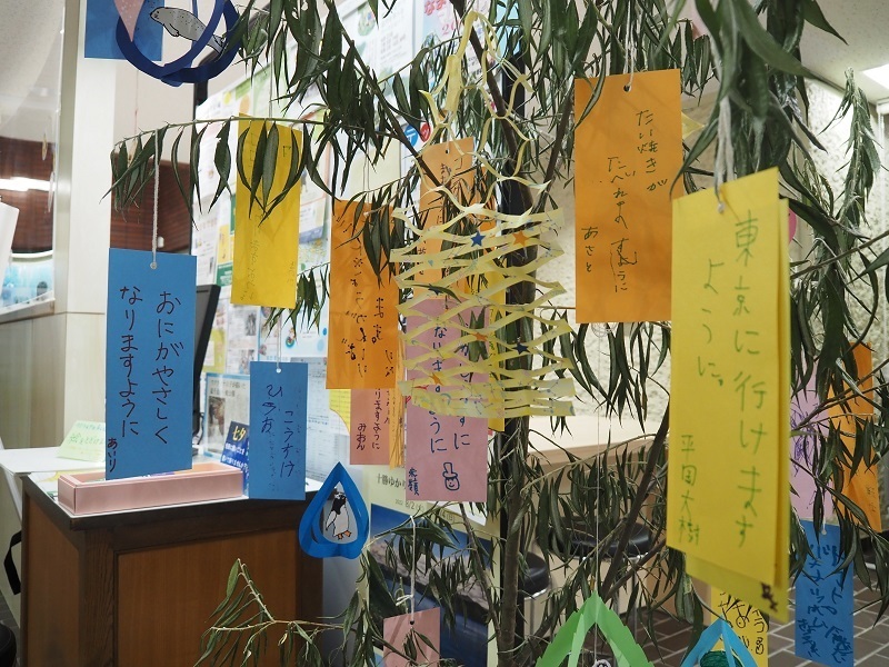 育児ネットめむろさん、ひばりワクワク広場実行委員会さん、めむろ町民活動支援センターの共催で行われており、先日24日(日)のあそび場でみんなで作った七夕飾りが、町民活動支援センターに飾られています。短冊は引き続き気軽に書きに来てください!とのことです。