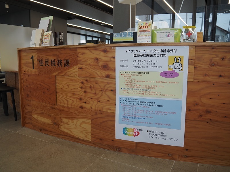 マイナンバーカードの申請とカード取得後のマイナポイントのお申込みについては、オンライン申請のほか、芽室町役場1階の住民税務課で受け付けています。