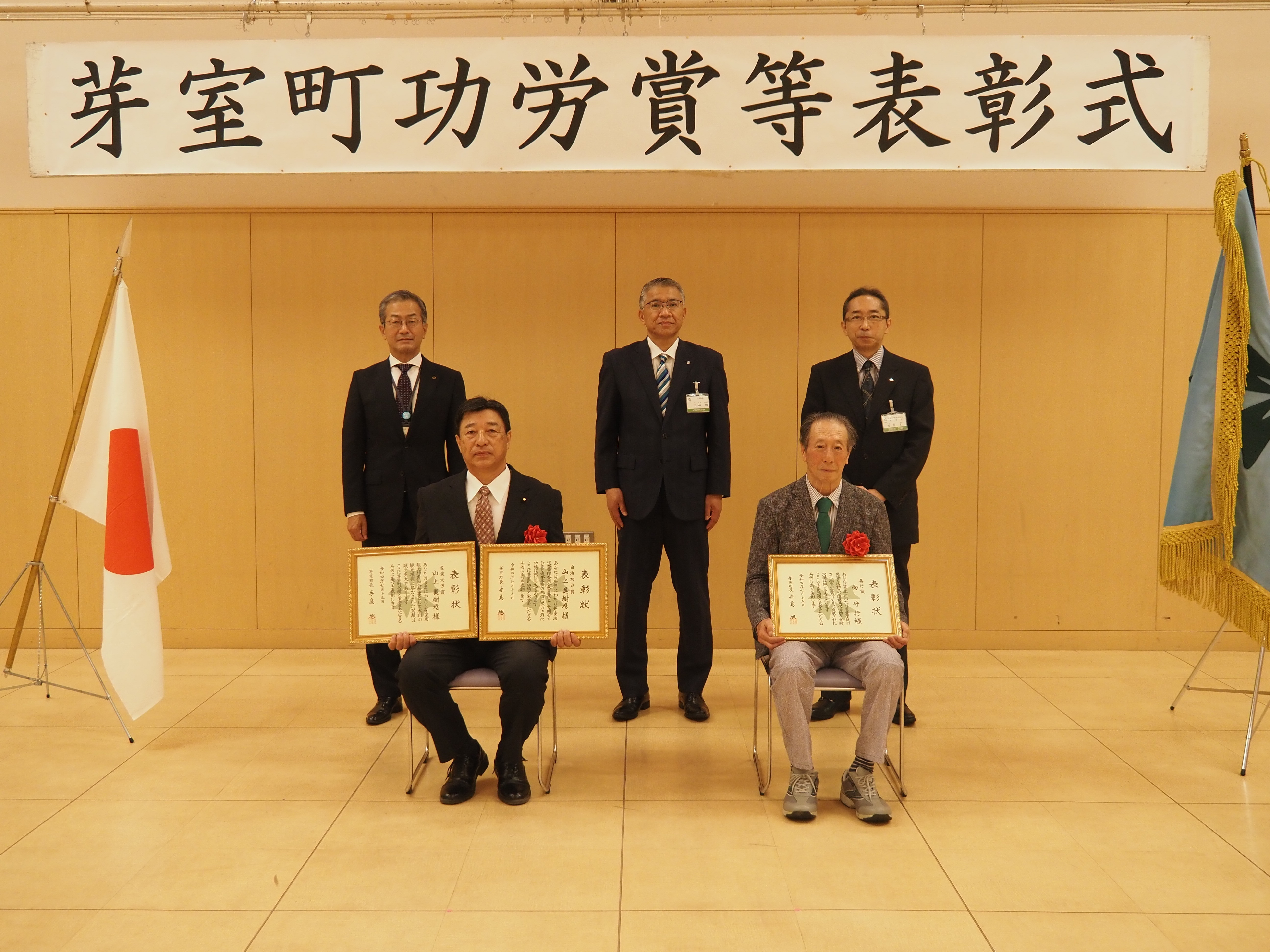 この芽室町にとって特別な日に「芽室町功労者等表彰式」が執り行われました。今年は、自治功労賞3名、産業功労賞1名、善行賞2名の方が受賞されました。表彰式には、芽室町選挙管理委員として10年、また芽室町観光物産協会理事として15年の永きにわたり活躍された山上美樹彦氏、そして多年にわたり児童生徒の見守り・環境美化活動に尽力された向守行氏の2名の受賞者が出席され、町長から栄誉と功績をたたえる表彰状が授与されました。